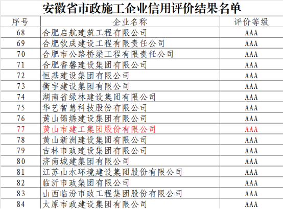近日,安徽省市政工程協(xié)會正式發(fā)布《關于公布2025年安徽省市政施工企業(yè)信用評價結果的通知》。黃山市建工集團憑借卓越的綜合實力、規(guī)范的市場行為、優(yōu)良的工程品質(zhì)及堅實的信用體系建設,成功獲評最高信用等級——AAA級。標志著集團在誠信經(jīng)營、履約能力與社會責任履行方面獲得了行業(yè)主管部門與協(xié)會的高度認可,是企業(yè)信用建設領域的又一重要里程碑。